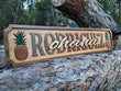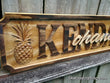 3D wood carved Hawaiian Family Name sign with Pineapples. This Personalized Ohana (family) Last name sign is carved from Select Pine and makes an awesome Wedding gift or a great way to decorate your Tropical Home or Coastal decor. Ohana means Family in Hawaiian. *Pineapples can be left unpainted upon request.