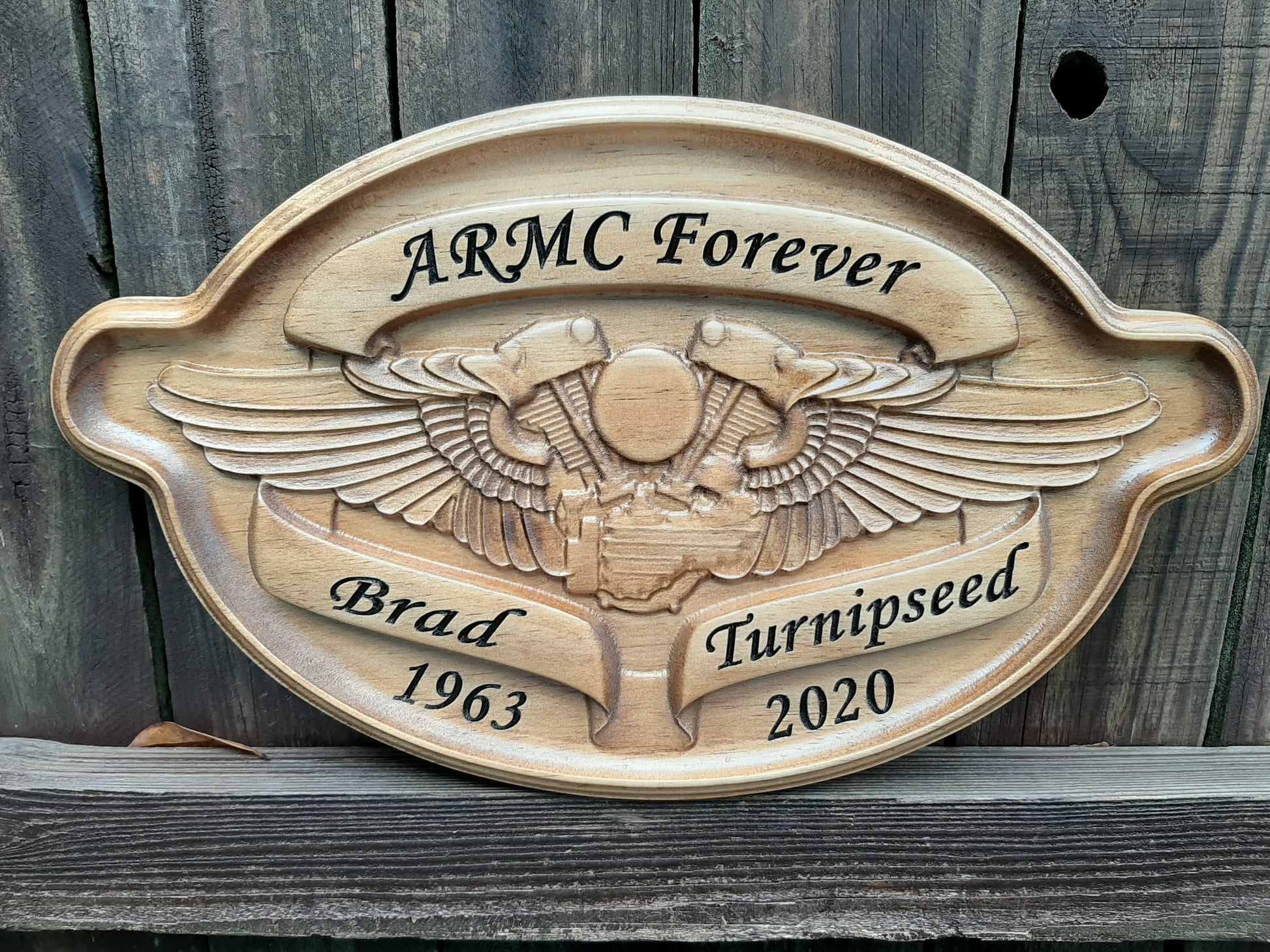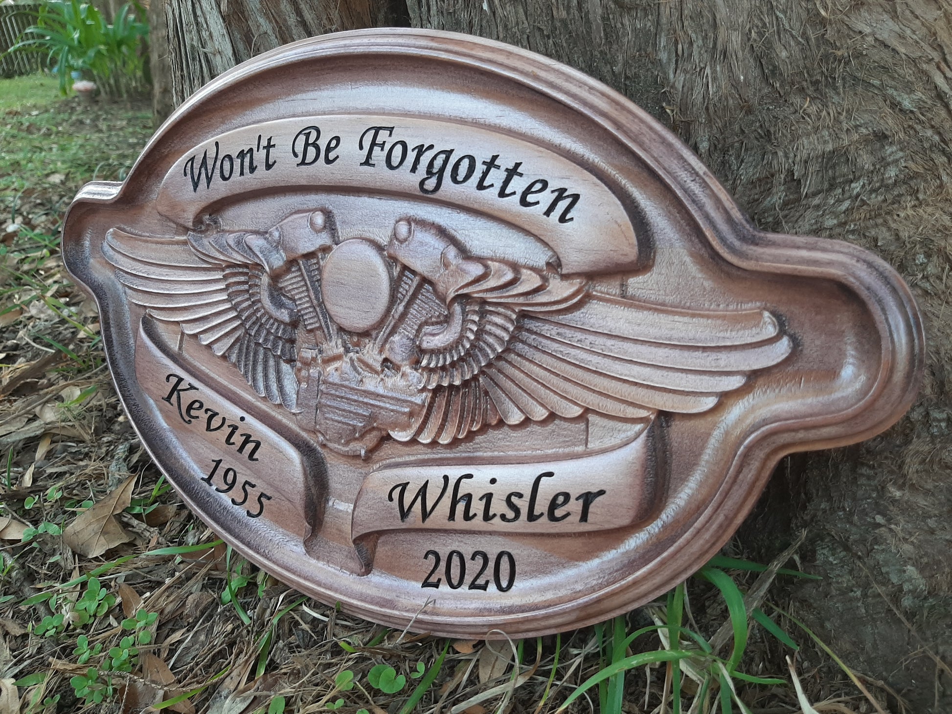 Personalized 3D Wood Carved Harley Davidson Memorial Name sign