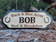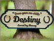 This Custom made Horse Stall Sign with Horseshoes is made from Select Pine and is personalized with your horse’s registered name on the top line (in quotations), the barn/nickname as the centerpiece and a smaller bottom text line with the owner’s first name. You can choose to have the bottom line to read “Loved by”, “Owned by” or “Ridden by”. * Please specify if you do not want quotations on the top line.