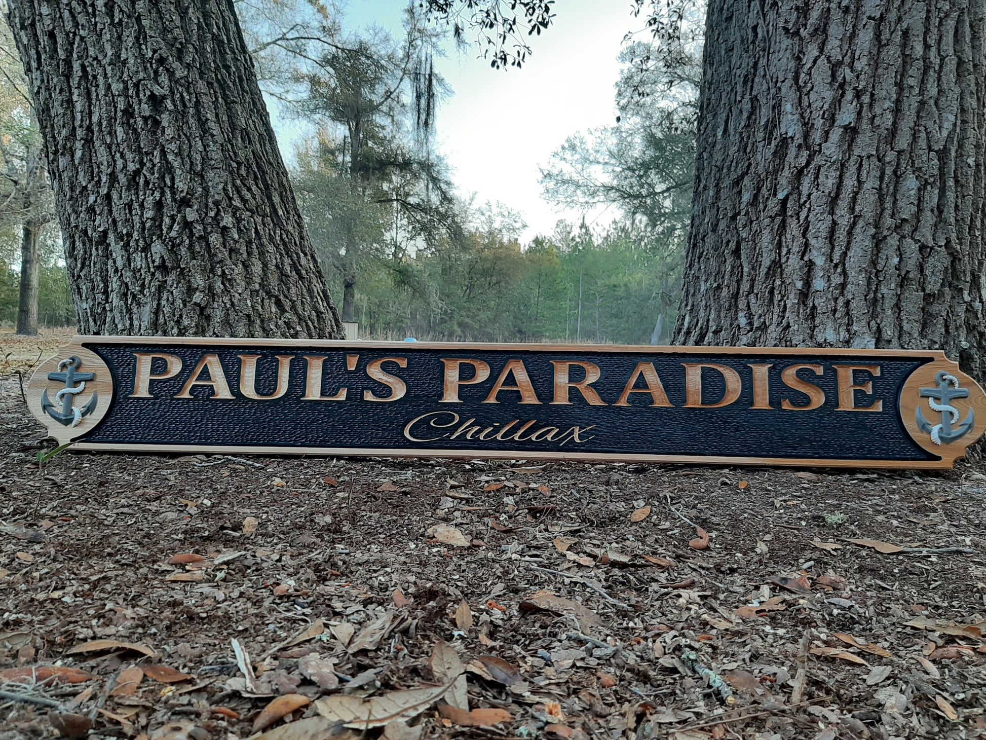 NOTE: Depending on harshness of weather exposed to, this sign may eventually require some maintenance with light sanding and reapplication of sealer. This Cedar sign is made from raw Western Red Cedar which will have varying grain patterns and shades of reddish-tan color, as well as knots. ***We try to carve in clear areas but knots can be present and show through text and or graphics. This is not a defect but adds to the rustic beauty of this wood product. Originally sealed with 3 coats of Marine grade Pro Spar Urethane."